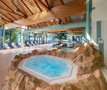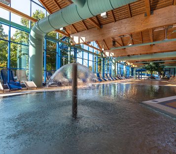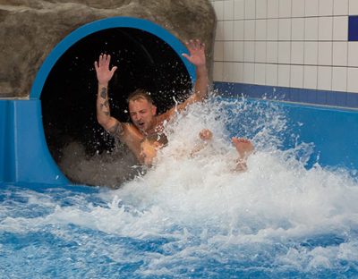 Tauchen Sie ein ins Vergnügen und lassen Sie sich mit allen Wassern überraschen. Sanft im blubbrigen Whirlpool entspannen, mit den Kindern im warmen Wasser planschen oder sich im Spaßbecken treiben lassen. Hier fühlt sich die ganze Familie einfach nur wohl und rutscht auch gleich mit der 83-Meter-Riesenrutsche ins nasse Vergnügen! Probieren Sie aus, was Ihnen am liebsten ist in unserem familienfreundlichen Bad.